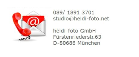 Haben Sie Fragen zu unseren Angeboten oder dem Ablauf eines Fotoshootings? Möchten Sie telefonisch reservieren oder einen Gutschein bestellen? Wir helfen gerne per Email studio@heidi-foto.net mit Rückrufservice.